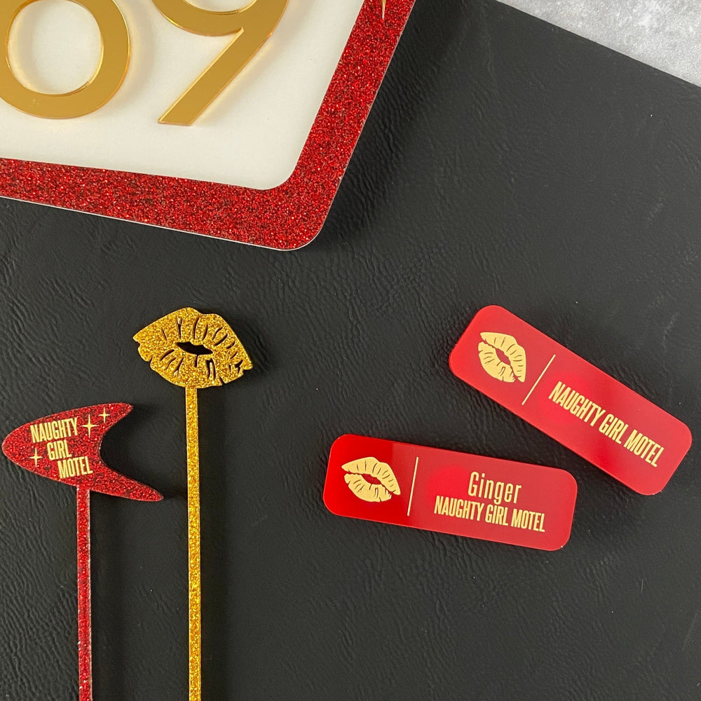 Personalized name tags with magnetic attachment. Can be made with any color acrylic (except transparent colors) or wood. We can add a logo and event adjust the shape as needed (doesn't need to be rectangle!)